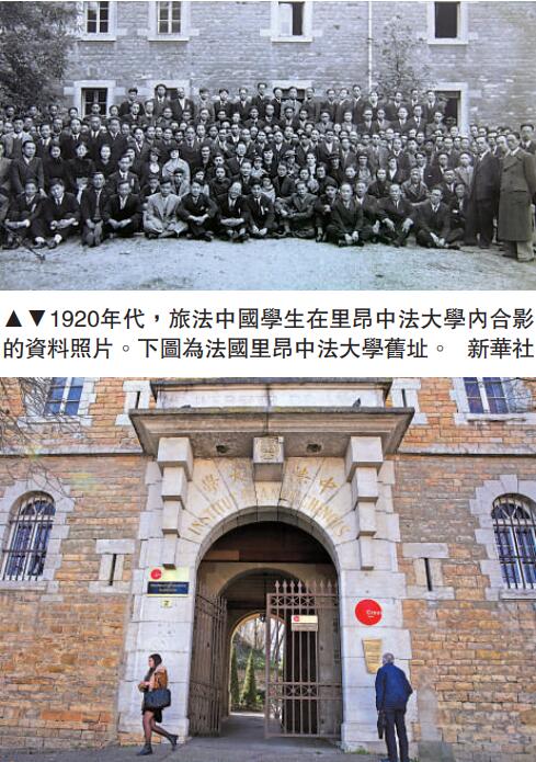 图:1920年代,旅法中国学生在里昂中法大学内合影的资料照片。下图为法国里昂中法大学旧址。\新华社