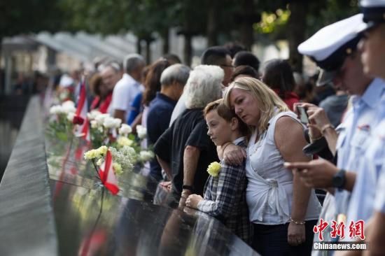 资料图:当地时间2019年9月11日,民众在纽约世贸遗址前寄哀思。 中新社记者 廖攀 摄