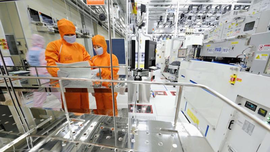 图:韩国SK海力士员工在无尘车间内工作。\网上图片