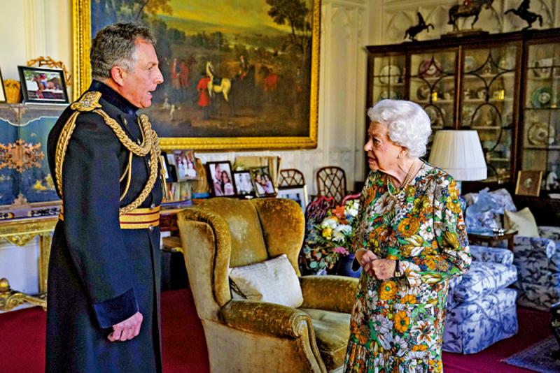 图:英女王(右)17日接见国防参谋长卡特。\美联社