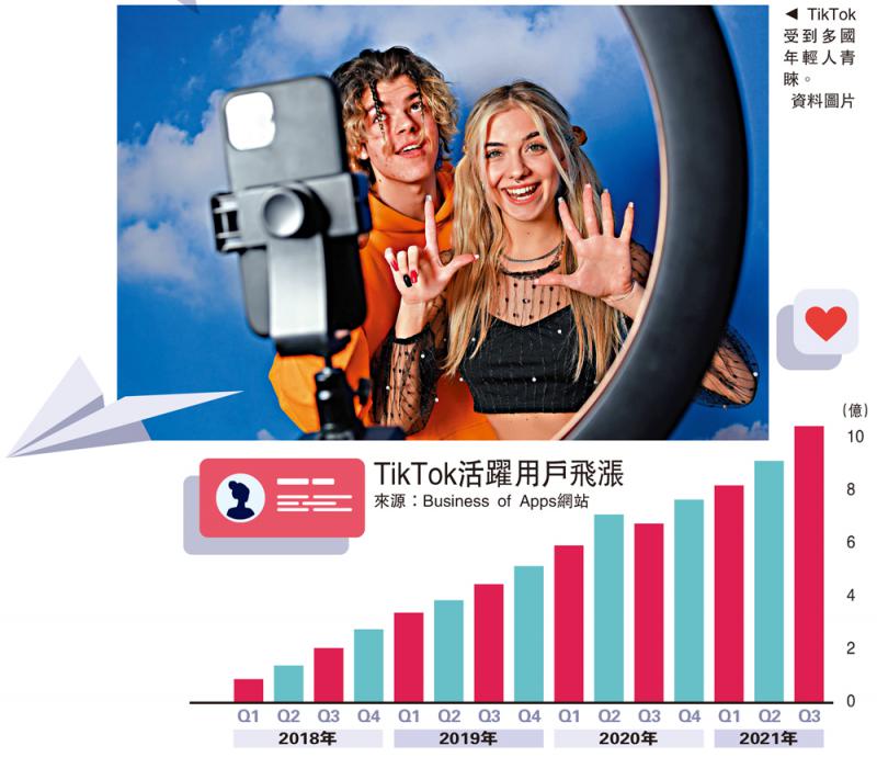 综合《华尔街日报》、《商业内幕》、英国广播公司报道:网络服务公司Cloudflare近日公布的2021年全球流量报告显示,中国字节跳动公司旗下的短视频应用程式TikTok战胜谷歌,成为今年全球访问量最高的网络平台。美媒指,新冠疫情期间TikTok下载量激增,东京奥运会运动员在该平台上分享奥运村日常生活,各大零售商也纷纷入驻,开始直播带货。今年9月,TikTok宣布其月活跃用户突破10亿大关。