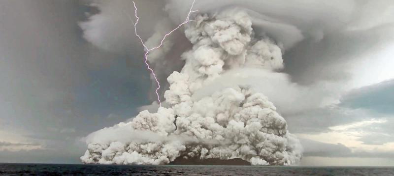 图:汤加海底火山14日以来数次喷发,产生巨大冲击。\路透社