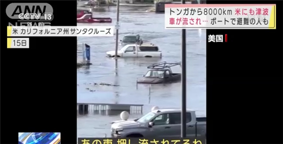 而距离汤加约8000公里的美国西海岸同样受到了海啸波及。