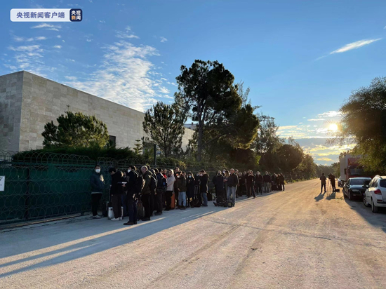 总台CGTN报道员Michal Bardavid在土耳其安塔利亚的一家酒店外,和各国记者一起排队等候发放媒体证件。俄乌外长会谈将于10日早11时在此举行。