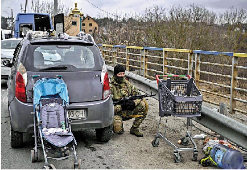 图:乌克兰士兵13日在基辅近郊伊尔平作战。\法新社