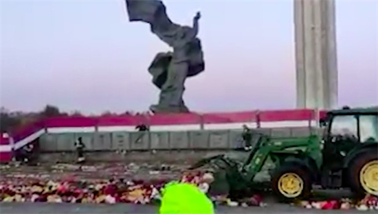 综合拉脱维亚通讯社、俄罗斯卫星通讯社10日报道,5月9日胜利日前夕,在拉脱维亚首都里加,民众自发前往解放者纪念碑献花。但这些鲜花随后被铲车铲走,几个小时后,民众再度将鲜花摆满广场。