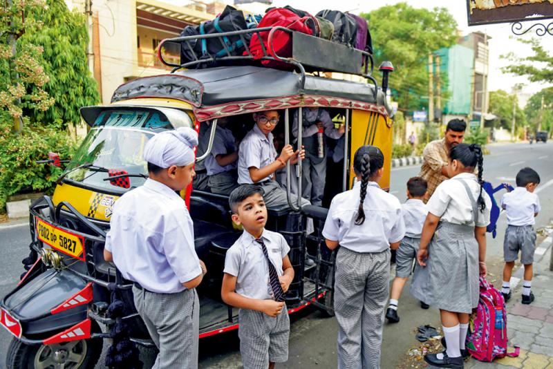图:印度儿童面临“番茄流感”威胁,图为印度儿童2日乘车去学校。\法新社