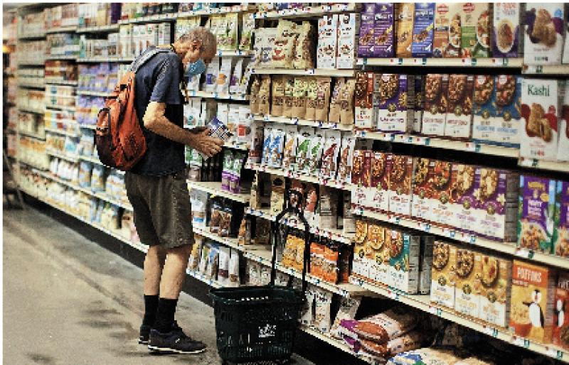 图:通胀是民主党最头疼的问题之一,图为一名美国男子7月27日在超市购物。\美联社