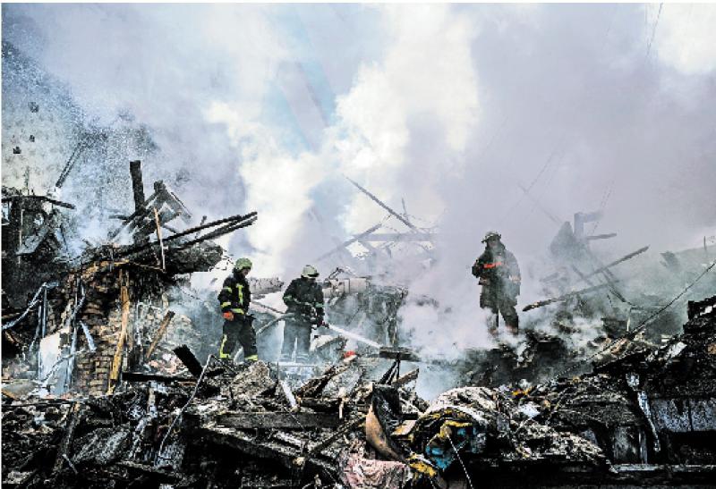 图:乌克兰扎波罗热地区近日遭狂轰滥炸,消防员6日灭火。\法新社
