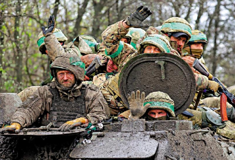图:俄乌15日在巴赫穆特激烈交火,图为从前线返回的乌克兰士兵。\路透社