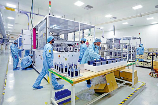 图:印度制造业存在基建落后、人才不足等问题。图为印度工人在一家太阳能设备工厂工作。\美联社