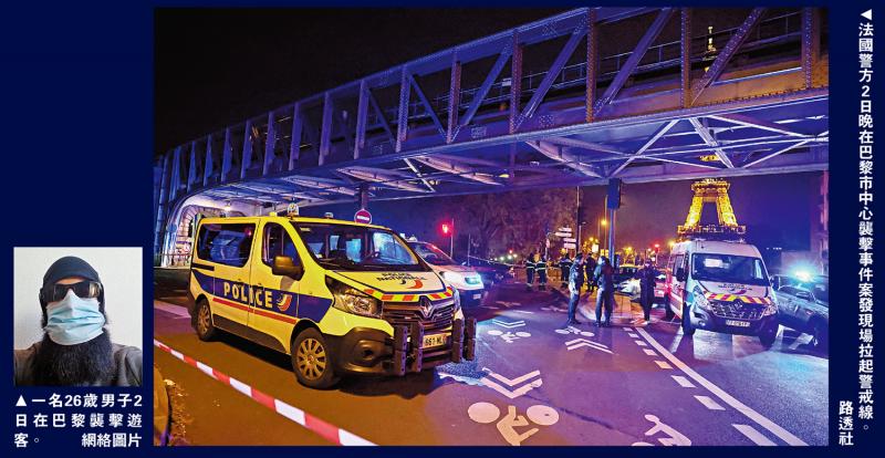 左图:一名26岁男子2日在巴黎袭击游客。\网络图片;右图:法国警方2日晚在巴黎市中心袭击事件案发现场拉起警戒线。\路透社