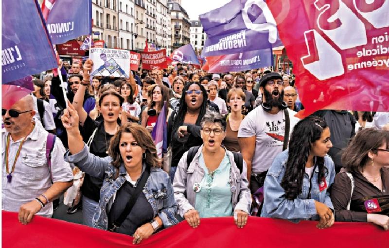 图:法国民众21日在巴黎示威,批评新政府人员构成不尊重选举结果。/美联社