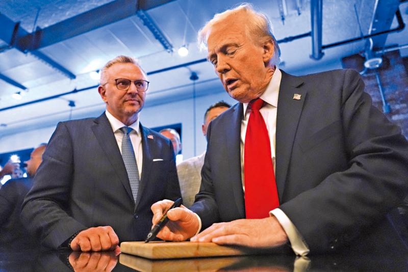 图:布洛斯(左)今年11月与特朗普一同参加活动。\美联社