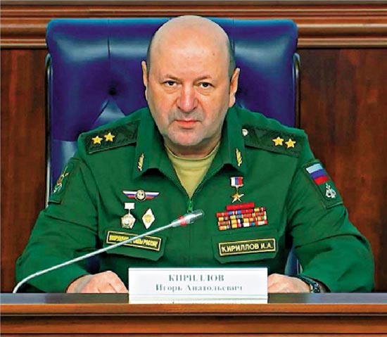 基里洛夫中将出生于1970年,曾在苏联武装部队服役,2017年被任命为俄罗斯武装力量辐射、化学和生物防护部队(三防部队)司令。新冠疫情期间,他领导了俄国防部冠状病毒RNA检测试剂的开发工作。