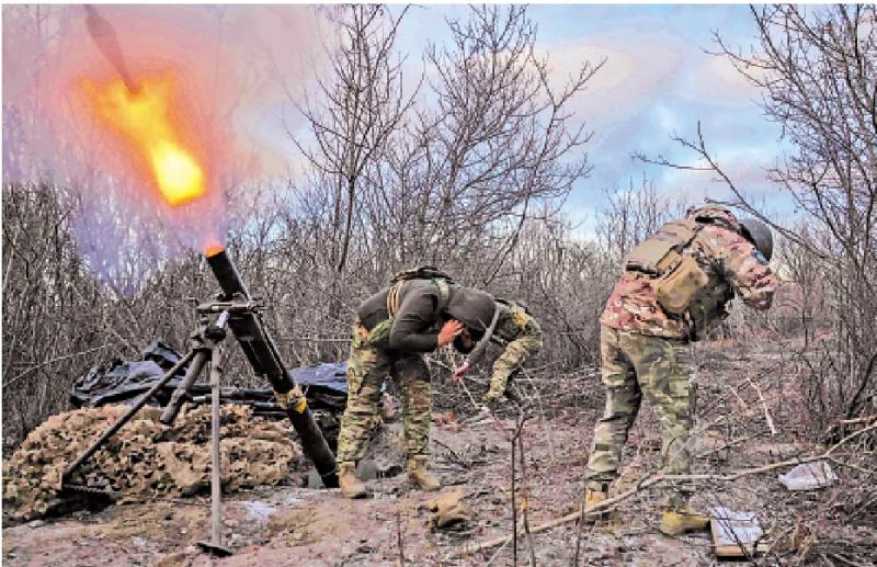 图:乌克兰士兵在顿涅茨克地区向俄军阵地发射炮弹。\法新社