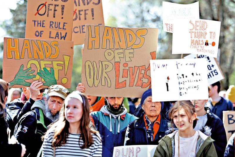 图:德国柏林5日举行反特朗普示威,抗议特朗普政府包括关税在内的政策。\路透社