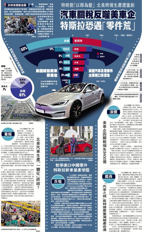 图:汽车关税反噬美车企 特斯拉恐遇“零件荒”