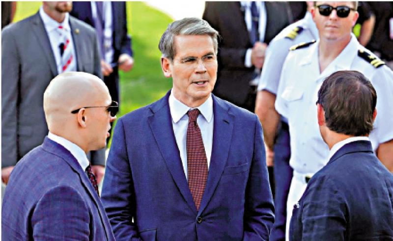 图:贝森特(中)对特朗普的关税政策产生重要影响。\法新社