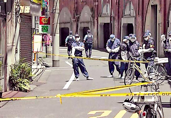 图:日本警方7月31日在两名中国籍男子遇袭现场进行调查。\网络图片