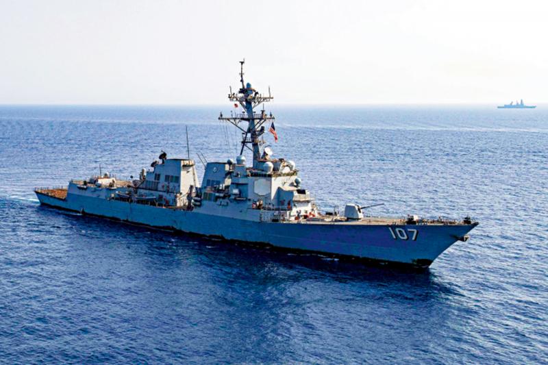 图:美国海军“格雷夫利”号驱逐舰在红海编队航行。\法新社