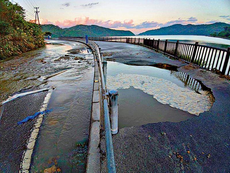 图:日本冲绳县24日一条水管破裂,导致冲绳本岛面临大范围停水。\共同社