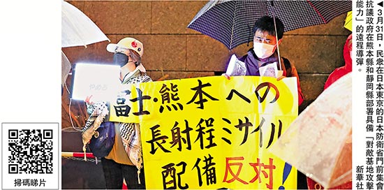 日本媒体评论称,这是日本首次部署此类导弹,标志着曾经奉行“专守防卫”原则的日本防卫政策已经发生转变。在东京的日本防卫省门前,大量抗议者冒雨高喊“必须停止部署远程导弹!”“给民众一个合理解释!”“反对进行战争准备!”等口号。