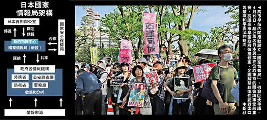 日本此番操作,与二战前日本军国主义做法如出一辙。日本《信浓每日新闻》指出,此举让人想起1940年太平洋战争前夕,日本将内阁情报部升格为情报局,从而压制言论、管控舆论、裹挟民众走向灾难的历史。《东京新闻》也警告,继《特定秘密保护法》和“共谋罪”法之后,国家情报局的设立将加强对公民的监控,重演二战时宪兵与“特高警察”打压异己的悲剧。