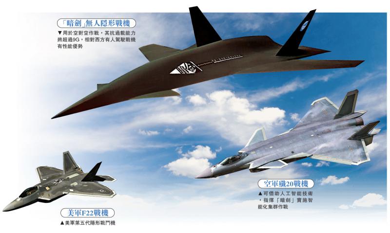 外界报道猜测,“暗剑”还能借助人工智能技术与歼-20协同作战,以歼-20为核心指挥“暗剑”实施智能化集群作战。亦有外媒预测,未来“暗剑”有可能携带中国最先进空空导弹,具备高超音速飞行能力,对东海、南海的“敌对武器平台”构成致命威胁,提升中国在东海、南海的“区域拒止”能力。