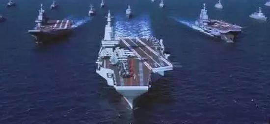 在此之前中国船舶重工集团公司微信公号“中船重工”20日发布一则会议消息稿,其中一张3艘航母组成的庞大海军编队的背景图,引发广大军事发烧友们的广泛猜测和热议。外界普遍猜测,图中最大的一艘航母应是国产003型航母的效果图,由於其配备了三座弹射器,应该是中国海军首艘弹射型航母。军事专家相信,中国再建造的新航母在尺寸、吨位、舰载机、弹射方式以及动力等都会有自己的创新。
