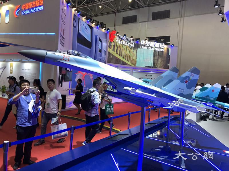图:苏-35多用途超机动战斗机模型亮相珠海航展\大公报记者方俊明摄
