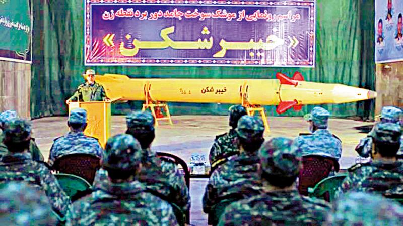 伊朗武装部队参谋长穆罕默德.巴盖里少将,与伊朗革命卫队空天部队司令阿米尔.阿里.哈吉扎德准将共同为导弹揭幕。这款导弹因为使用固体燃料,故比此前尺寸类似的导弹轻三分之一,发射准备时长缩短六分之一,可击中1450公里范围内的目标。从地图上看,从伊朗境内发射该导弹,基本可以完全覆盖中东假想敌所在区域。