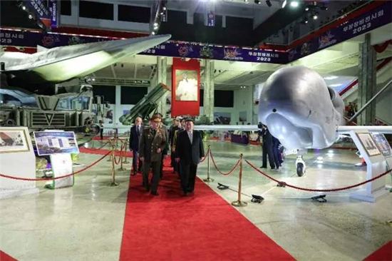金正恩带绍伊古参观朝鲜最新核武器 图片来源:劳动新闻(2023年7月27日)