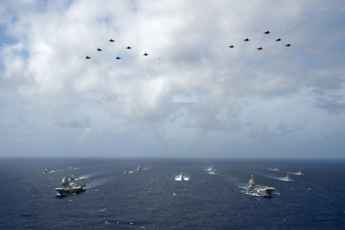 训练期间,编队转战黄海、东海、南海等多个海域,开展实战背景下多个科目综合演练,官兵全程保持高度戒备、随时反应的作战状态。在南海某海域,辽宁舰、山东舰编队首次开展双航母编队演练,锤炼提升航母编队体系作战能力。
