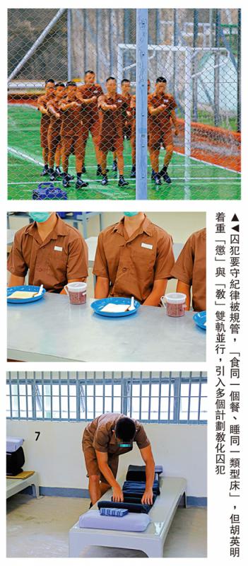 图:囚犯要守纪律被规管,“食同一个餐、睡同一类型床”,但胡英明着重“惩”与“教”双轨并行,引入多个计划教化囚犯