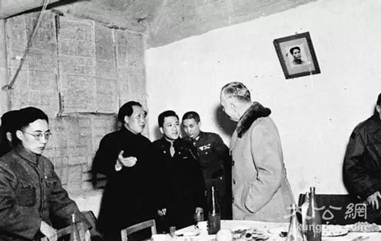 1946年3月,毛泽东在延安设宴欢迎美国总统特使马歇尔。资料图
