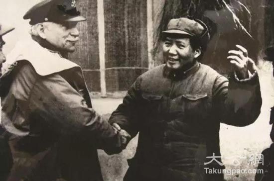 毛泽东与罗斯福私人代表赫尔利在延安。资料图