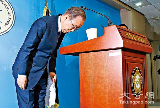 潘基文对上述情况一清二楚,回国后与政界人士进行了广泛接触,更明辨了是非。朴槿惠已被弹劾,不可能再借助于她。新世界党分裂局面已定,实力大为削弱,潘基文投靠哪一派都不会有利,遑论他所谓的“政治改革”。况且,在潘基文担任联合国秘书长期间,他的弟弟与其子涉嫌贿赂,美国司法部门已通缉,要求韩国司法部门把两人引渡给美国,潘基文的支持率因此已下降到百分之二十以下,有的媒体报道只剩百分之十三,这无疑是他宣布退选的一个重要因素。潘基文在记者会上谈到自己的切肤感受,直言韩国政坛“陈腐的利己主义令他大失所望”,这也是一个重要原因。