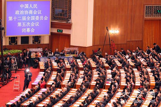 全国政协十二届五次会议13日在北京闭幕。大公报摄