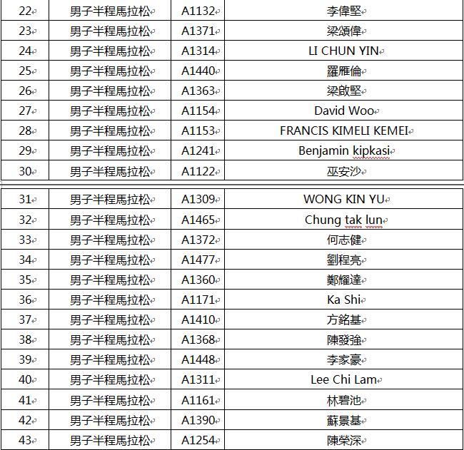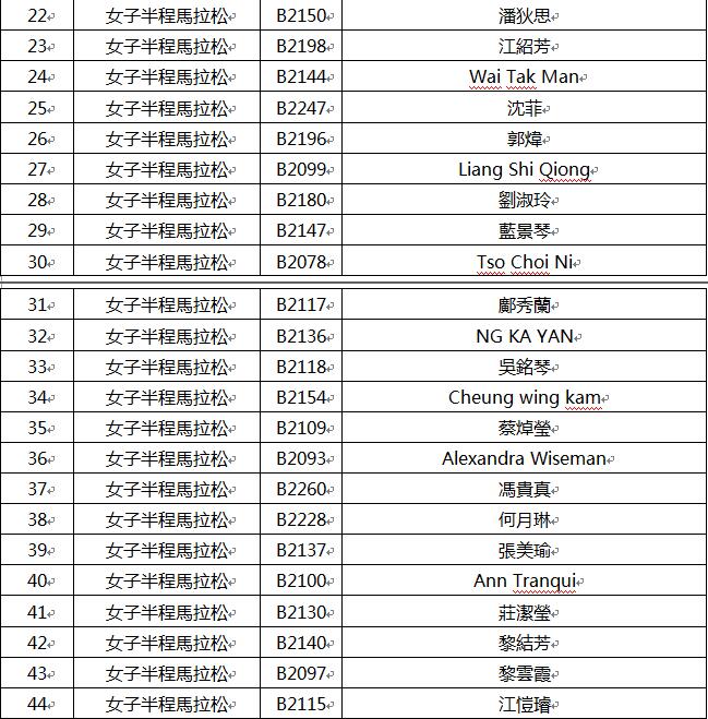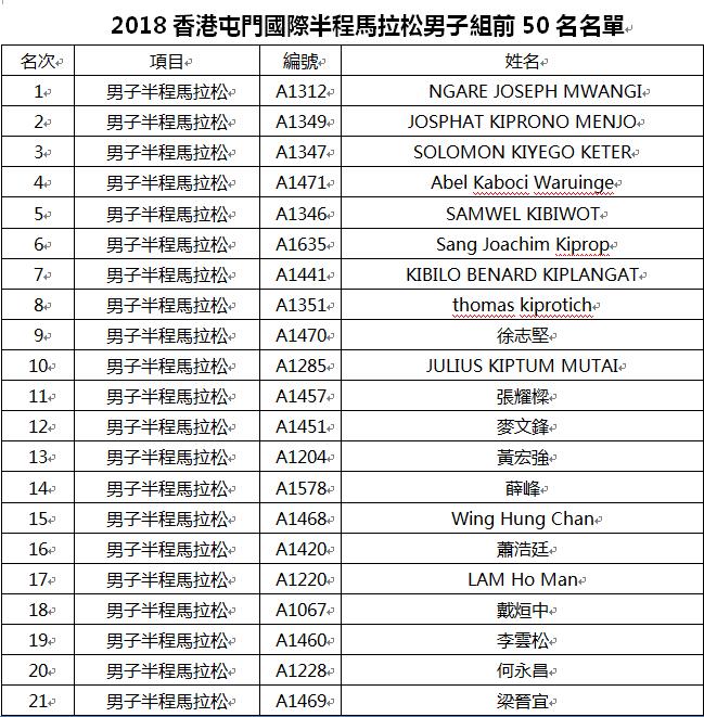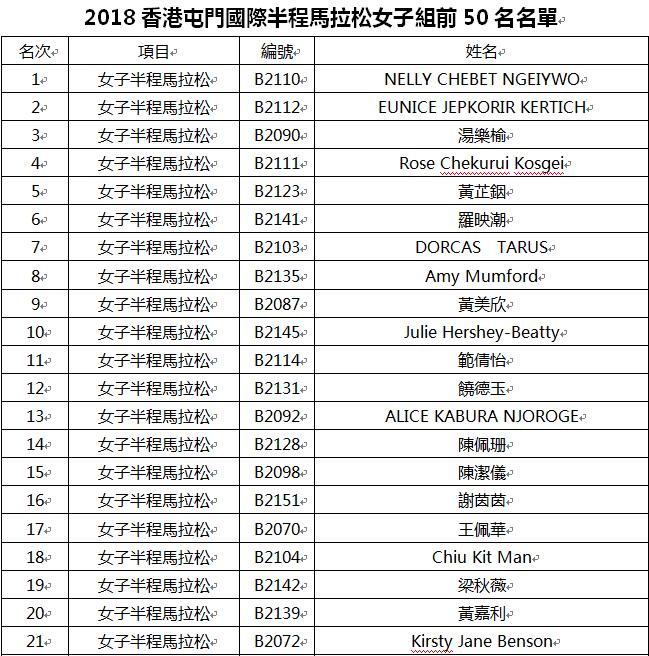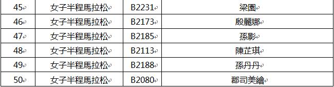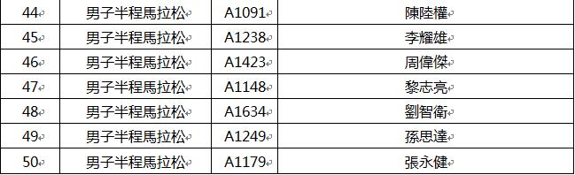 現將賽事男、女子各前五十名跑手成績單公布如下表,眾跑者可點擊下面鏈接查詢: