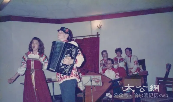 在哈巴罗夫斯克的欢迎会上,哈巴罗夫斯克小白桦民间艺术团登台表演。