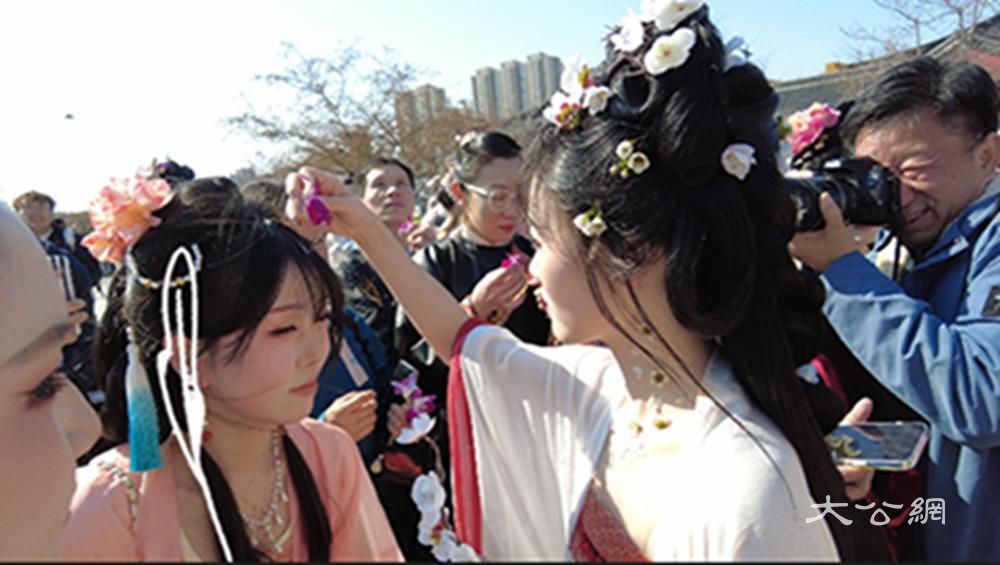 【大公网河南讯】“百花生日是良辰,未到花期一半春。红紫万千披锦绣,尚劳点缀贺花神。” 3月16日下午,由洛阳传统文化研究会、洛阳汉服专委会主办,洛阳月华阁汉婚文化馆、洛阳领克中心承办的2025第十二届洛阳汉服花朝节在瀍河区瀍壑朱樱景区举行,吸引了百余名汉服爱好者参加。此次花朝节的主题是“花朝锦簇,喜巳福来”,设置了祭拜花神,花朝雅集,赏红巡春等环节。