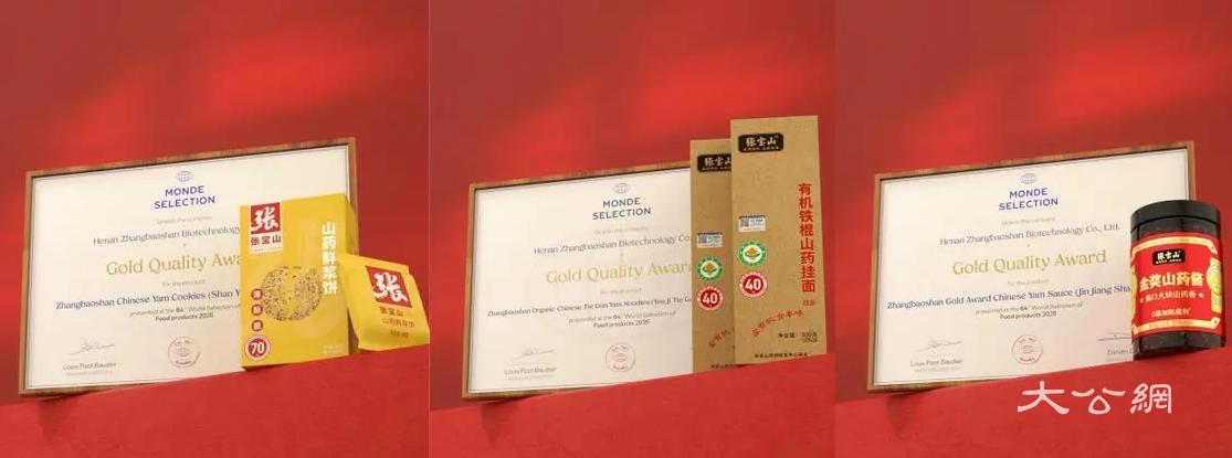 【大公网河南讯】5月25日,素有“食品界诺贝尔奖”之称的世界食品品质评鉴大会(Monde Selection)在捷克布拉格揭晓2025年度获奖名单,中国山药品牌“张宝山”凭借其传承百年的非遗技艺与现代化创新产品,连续三年蝉联金奖,成为全球山药食品领域首个获此殊荣的品牌。这一荣誉不仅标志着中国山药产业的国际影响力持续提升,更彰显了传统非遗文化与现代食品科技的深度融合。