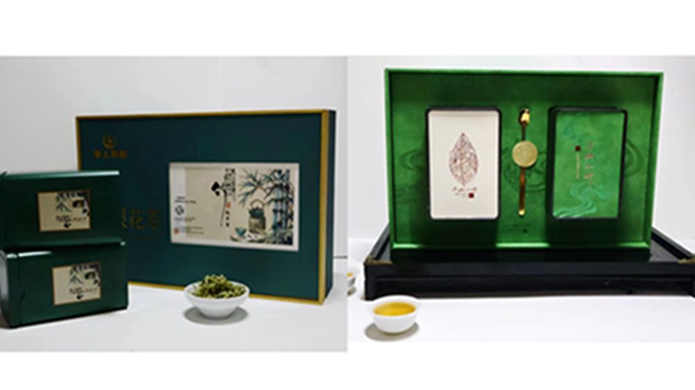 说到衍生品,“掌上茶园”平台为扩大宣传,印有项目名片,以及推出衍生品,与非遗、钧瓷等跨界联名,并出售定制茶叶包装、吉祥物娃娃、定制贴画、手提袋、立牌、钥匙扣、香囊等。这一系列产品为传统金银花注入新的活力,为封丘金银花“增添光彩”。