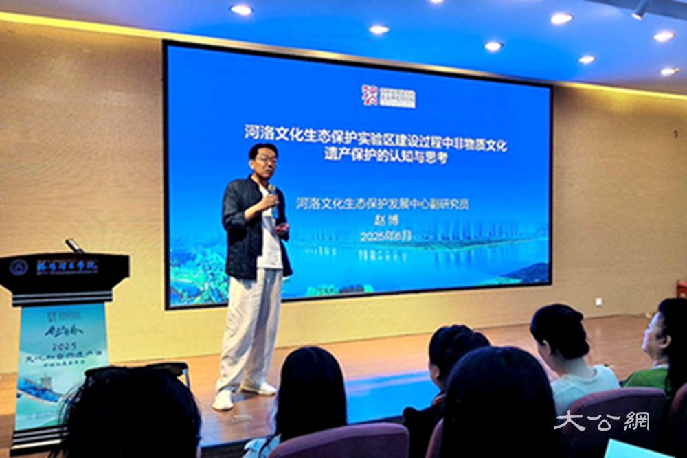 交流会上,河洛文化生态保护发展中心副研究员赵博做《河洛文化生态保护实验区建设过程中非物质文化遗产保护的认知与思考》讲座,深度剖析了河洛文化的独特价值,通俗易懂地展示了非遗传承与保护的重要性。