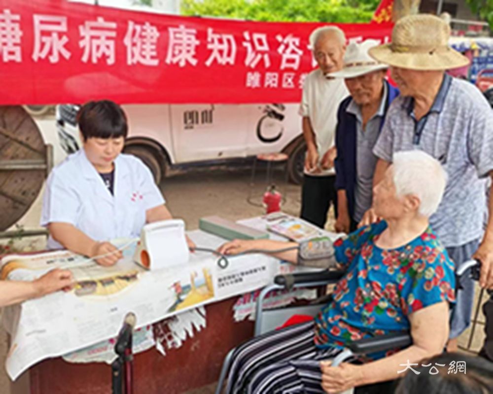 在党群服务中心的一边,由该镇卫生院医生和村医组成的义诊小分队,对前来参加饺子宴的老人逐个进行测量血压、血糖、血脂等体检项目,详细了解目前所服用的药品,建立台账记录下来,同时针对老人们的疑问,耐心给他们讲解一些常见病的预防和治疗知识。