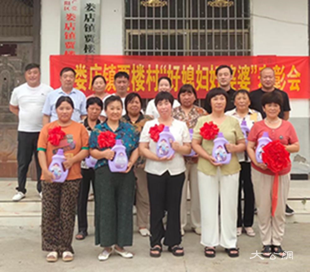 最后,在热烈的掌声中,贾楼村对乡村光荣榜上榜人员:12名好媳妇好婆婆好妯娌进行了表彰,获奖者身带大红花,手拿奖品,笑靥如花。