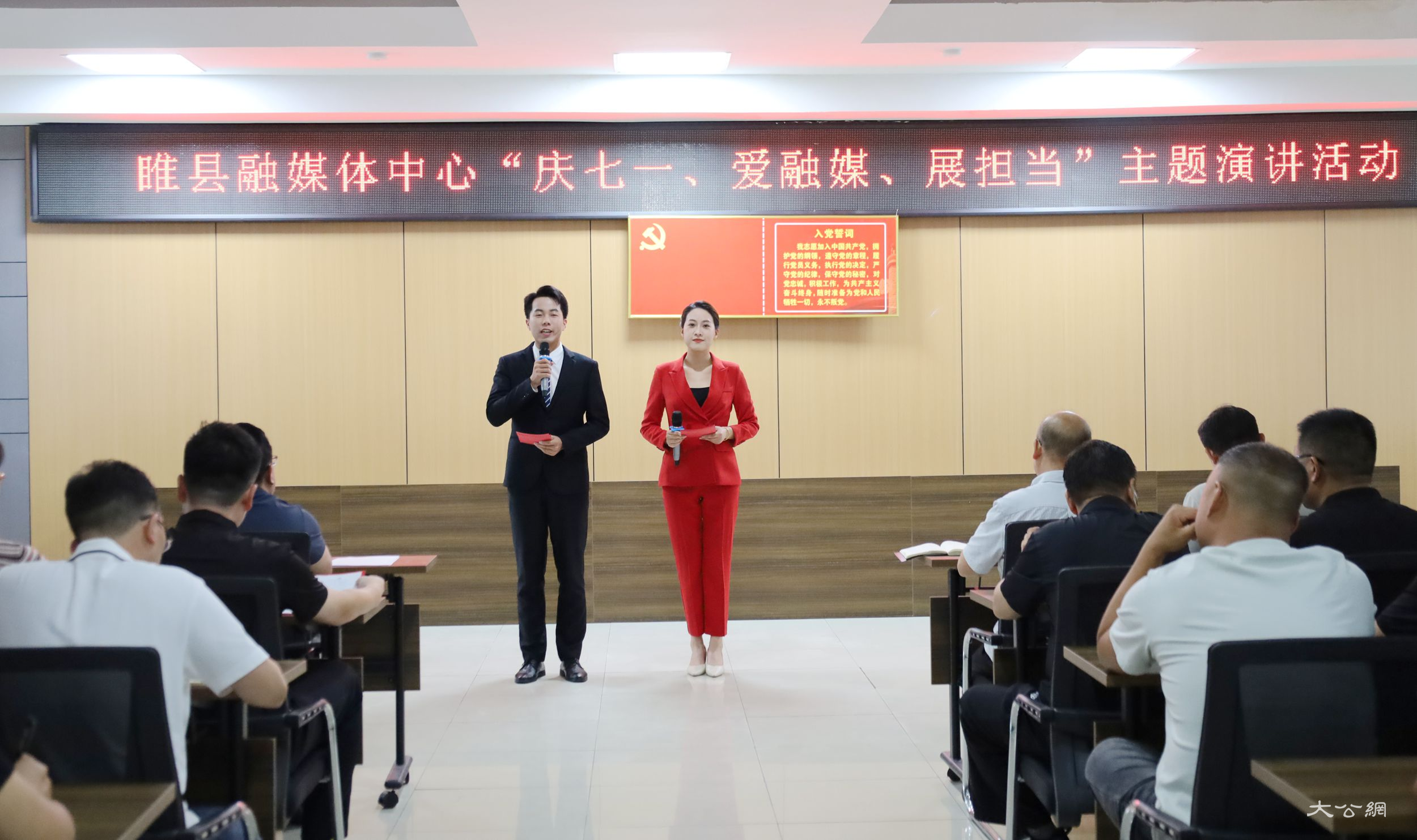 在随后举行的“庆七一、爱融媒、展担当”主题演讲活动中,九名新闻工作者结合工作实际,用真挚的情感和生动的语言,以富有激情、充满豪情的生动讲述,抒发了对党和人民的无限忠诚,对融媒事业的热爱与坚守,诠释着党媒人的使命担当。 “作为一名新闻工作者,同时也是一名共产党员,我将发挥党员先锋模范作用,在工作中勇挑重担,以勇争第一的豪气,舍我其谁的霸气和干事创业当先锋的锐气,围绕中心、服务大局,积极践行‘四力’,把对党和人民的无限忠诚化作对新闻事业的热爱与坚守。”睢县融媒体中心记者徐晨宇说。