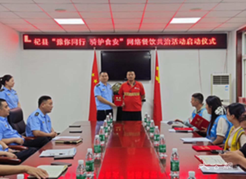 【大公网河南讯】8月15日,开封市杞县市场监督管理局举行启动“豫你同行 骑护食安”网络餐饮共治活动。杞县局党组成员、副局长焦勤涛出席会议并讲话,县局相关股室负责同志,辖区所负责同志,美团、饿了么、京东3家平台负责人及优秀骑手参加会议。