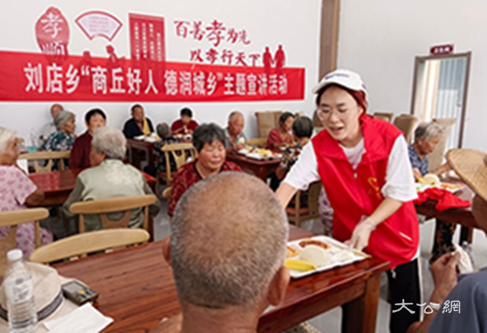 【大公网河南讯】8月21日中午,河南省商丘市虞城县刘店乡大刘楼村“以孝治家”大食堂内欢声笑语、凉意怡人,全村75岁以上的老人欢聚一堂,共进丰盛午餐。这顿充满爱心的午餐,由该乡兼职团委副书记、信阳师范大学大一学生张湉湉个人赞助,她用暑假打工赚来的“第一桶金”回馈家乡老年人,以实际行动弘扬尊老敬老的传统美德。